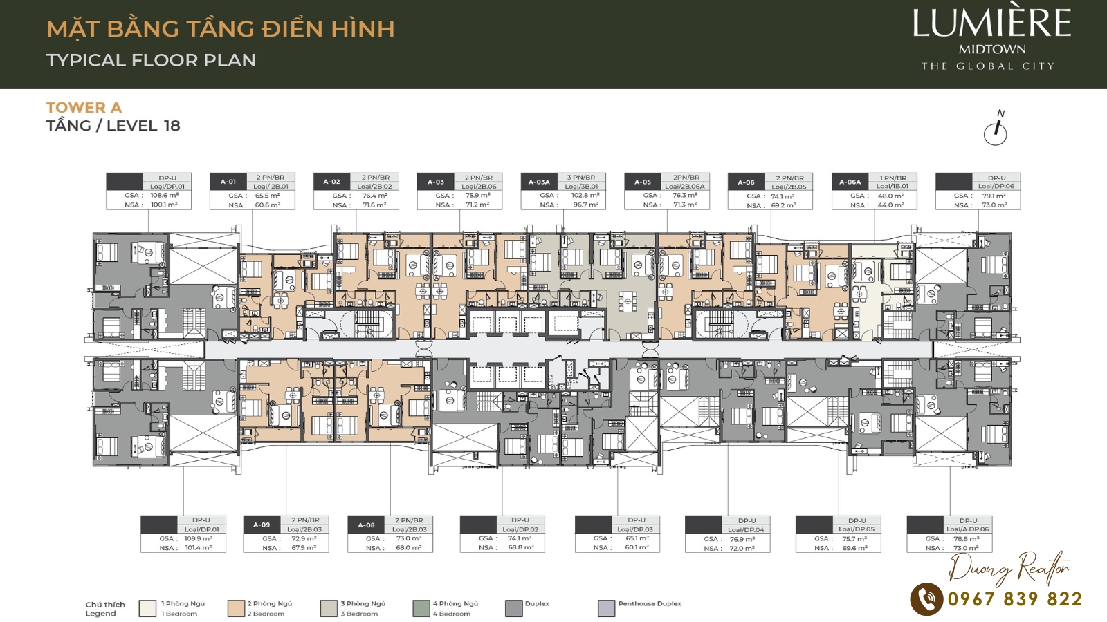 MẶT BẰNG DUPLEX LUMIERE MIDTOWN TẦNG 17-18