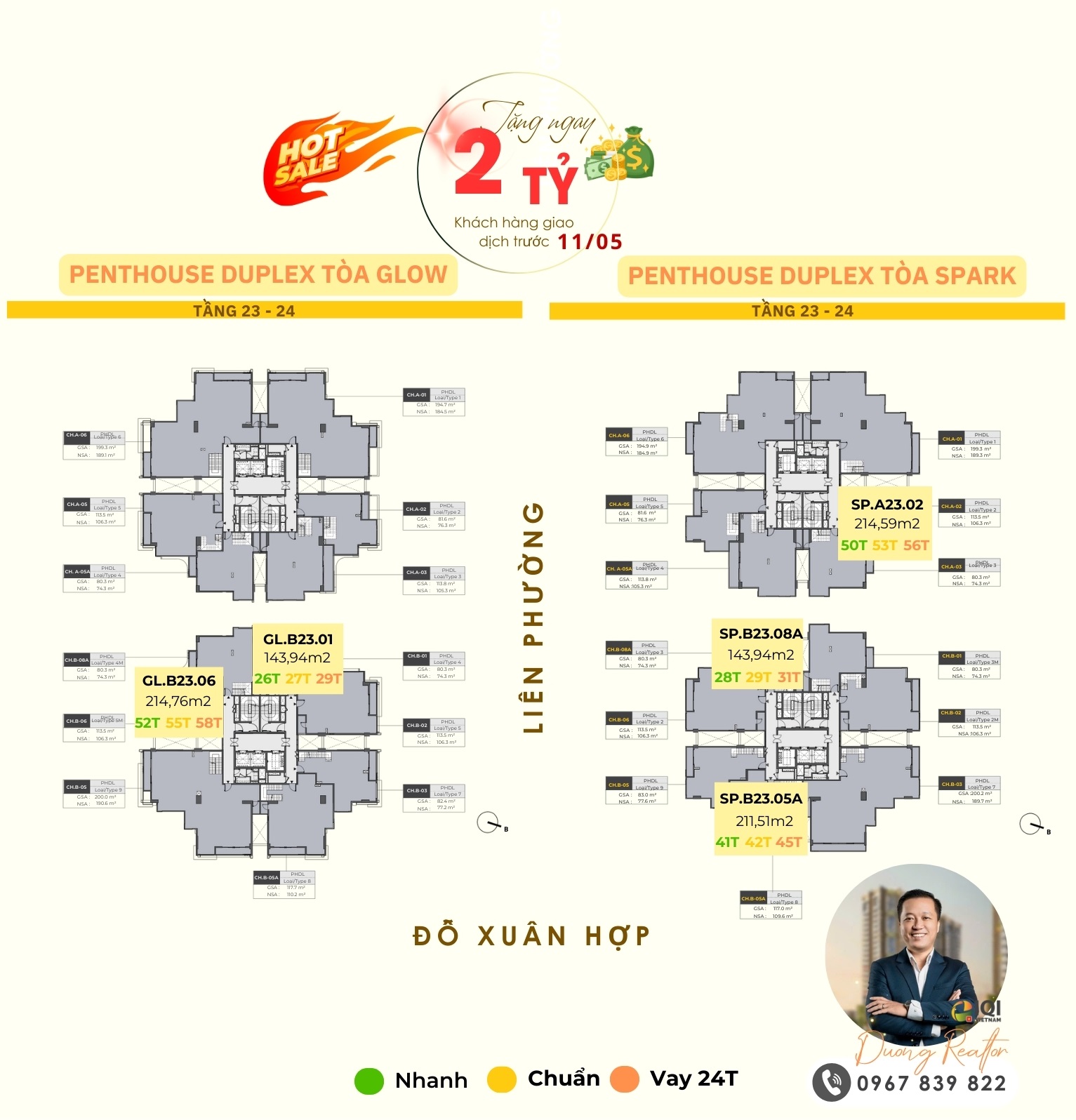 Lưu ý: Quà tặng được được trừ trực tiếp vào giá bán căn Penthouse. Gọi ngay Dương Realtor: 0967 839 822 sở hữu ngay CƠ HỘI có 1-0-2 này Anh Chị nhé!